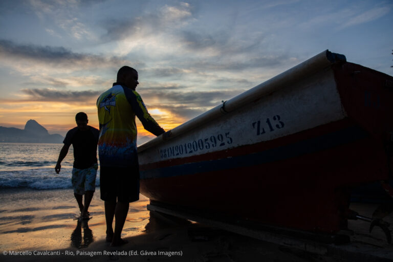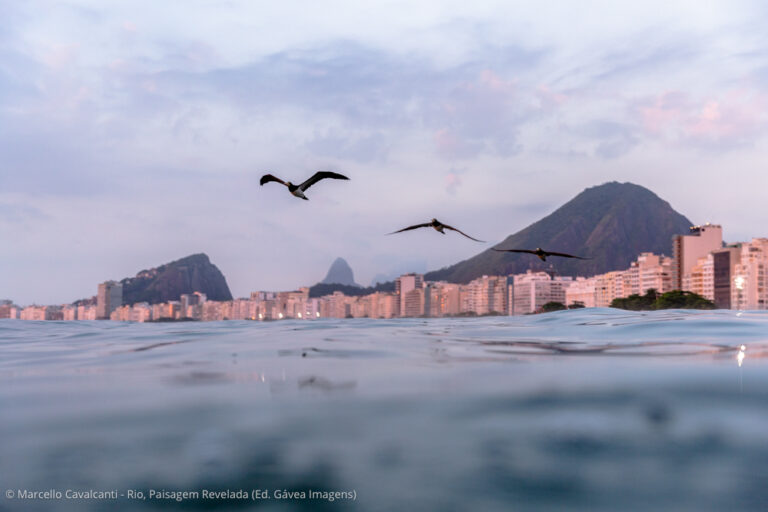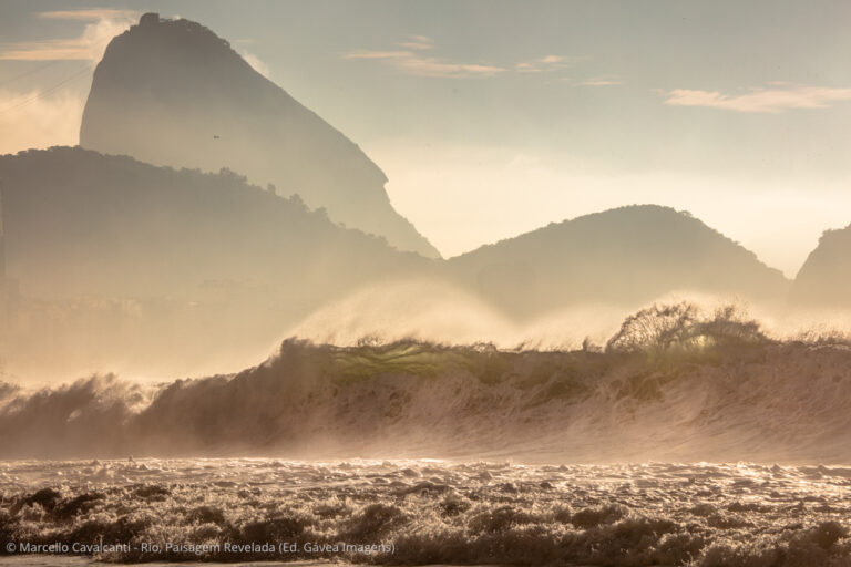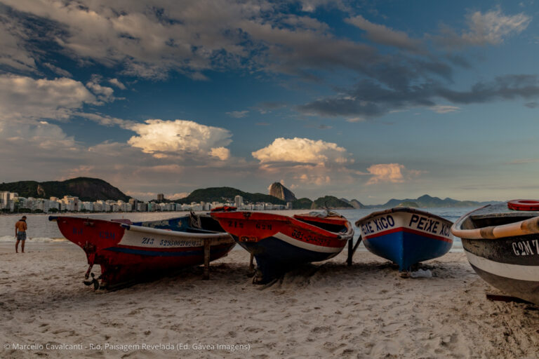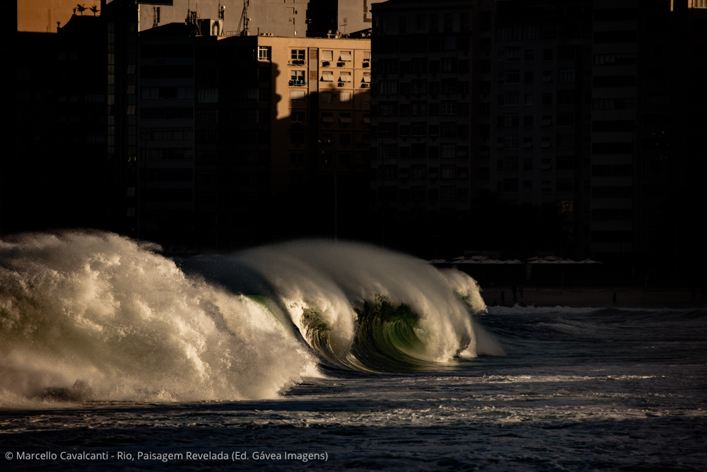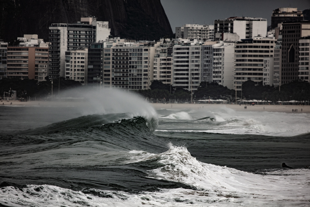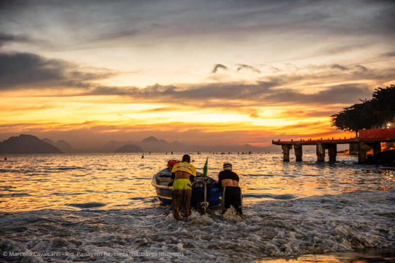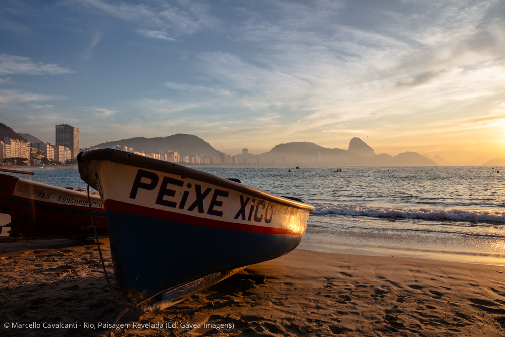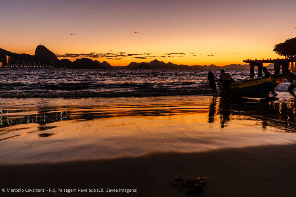 Copacabana é a verdadeira Babilônia social, cultural e geográfica do Rio. Personagens interessantes, praia, montanhas, edifícios históricos — o que não falta por aqui é assunto. Mas, como a temática do livro concentra-se na paisagem natural e urbana, vou focar em dois pontos específicos da praia. O primeiro é o Posto 6, onde fica a base da colônia de pesca Z-13. Chegando bem cedo, um pouco antes do nascer do sol, é possível fotografar a saída dos pescadores para o mar, com seus pequenos barcos de madeira e apetrechos de pesca. Nesse ponto da praia, o mar é mais abrigado, por isso você também verá canoas havaianas, mergulhadores, nadadores de mar aberto e centenas de adeptos da atividade mais concorrida dos últimos verões: assistir ao nascer do sol no mar, sobre pranchas alugadas de stand-up paddle. O outro ponto de interesse é ali perto, na altura do Posto 5. Em determinadas ondulações durante o ano, a direção do mar muda de sul/sudoeste para leste, provocando enormes ondas nesse trecho da praia, que fazem a alegria dos surfistas e dos fotógrafos.